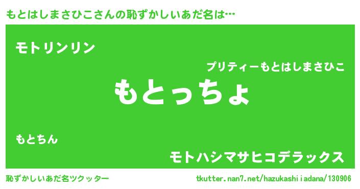 | ポケモン風あだ名 | 『モトハダネ』『ヒモトハシマサヒコ』 |
