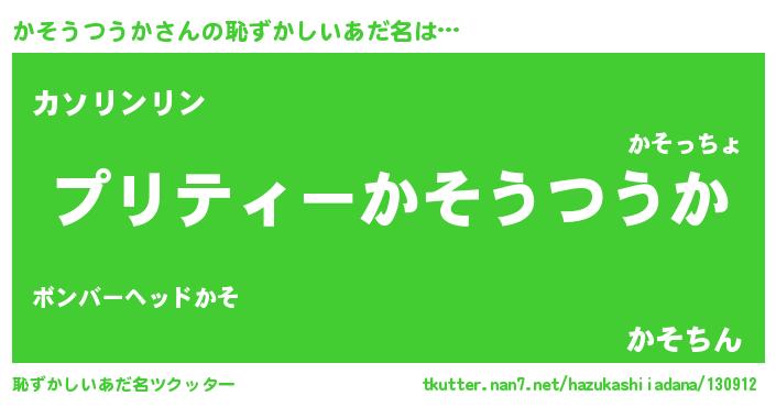 | ヒーロー風カッコイイあだ名 | 『仮面カソダー』『スーパーカソウツウカ』 |