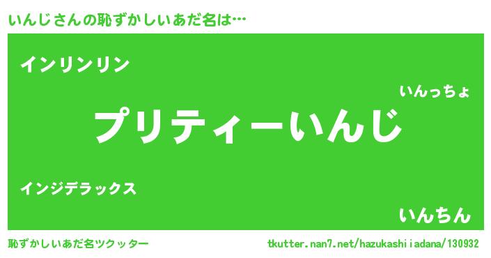 | 欧米人風あだ名 | 『アンジェラ・いんじ』『マイケルいんじ』 |