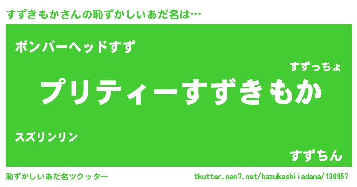 | ヘコむあだ名 | 『すずにー』『すずきもか(笑)』 |