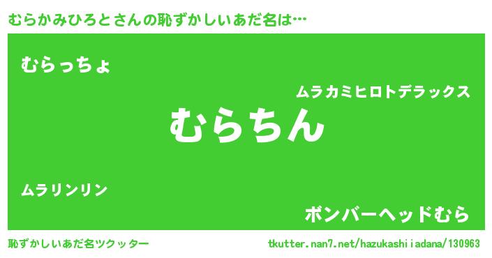 | ヒーロー風カッコイイあだ名 | 『仮面ムラダー』『ネオムラカミヒロト』 |