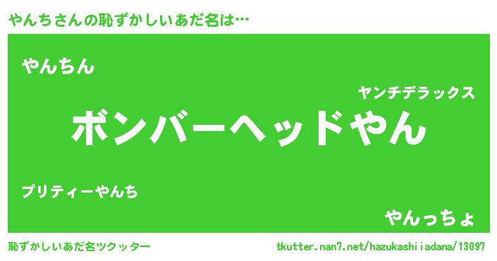 | ヘコむあだ名 | 『やんち(爆)』『牛乳』『やんもー』 |