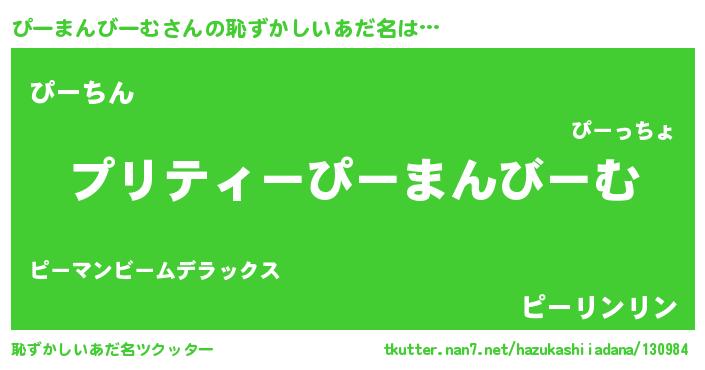 | ヘコむあだ名 | 『ぴーふぇ~』『ぴーまんびーむ(遠い目)』 |