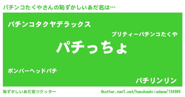 | ヒーロー風カッコイイあだ名 | 『ウルトラパチンコたくやマン』 |