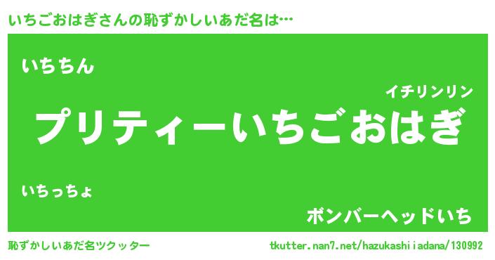 | ヒーロー風カッコイイあだ名 | 『スーパーイチゴオハギ』『仮面イチダー』 |