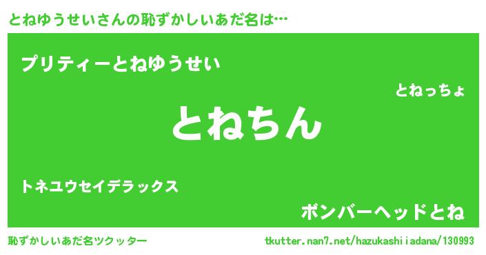 | 意味不明あだ名 | 『永久保存とねゆうせい』 |