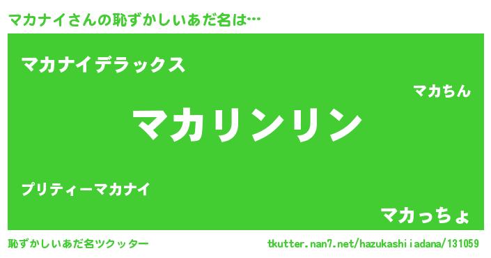 | ヒーロー風カッコイイあだ名 | 『魔戒騎士マカ』『サイバー戦士マカナイ』 |