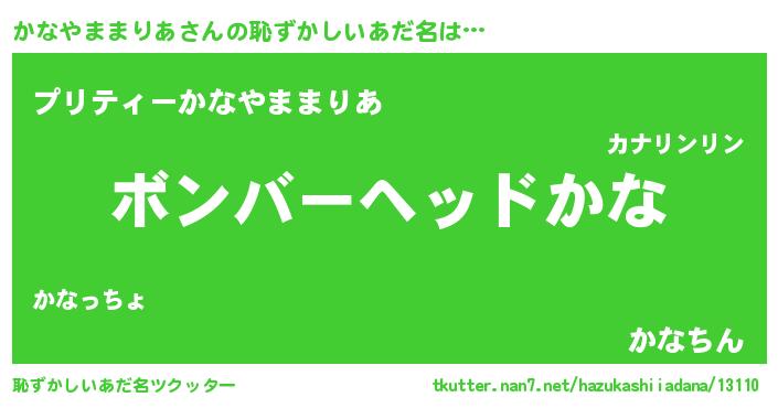 | 男性向けラノベタイトル風あだ名 | 『ノーゲーム・ノーカナヤママリア』 |