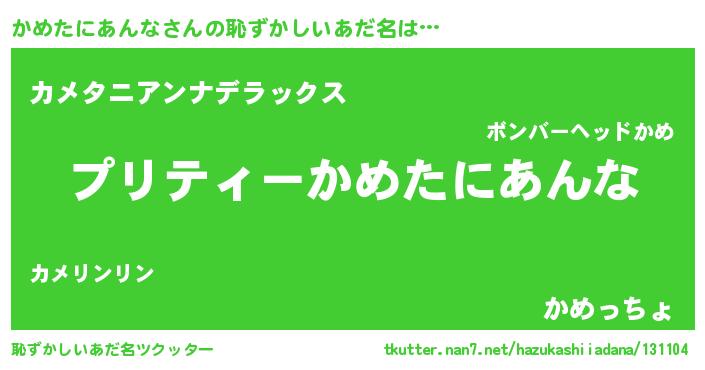 | 男性向けラノベタイトル風あだ名 | 『転生したらかめたにあんなだった件』 |