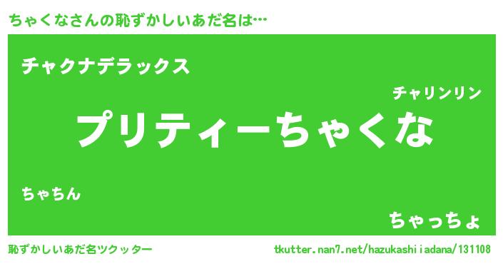 | 意味不明あだ名 | 『ペロリンちゃくな』『自称ちゃくな』 |