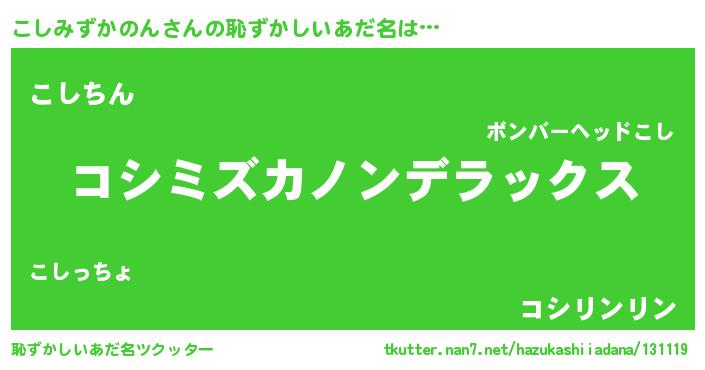 | 意味不明あだ名 | 『自称こしみずかのん』 |