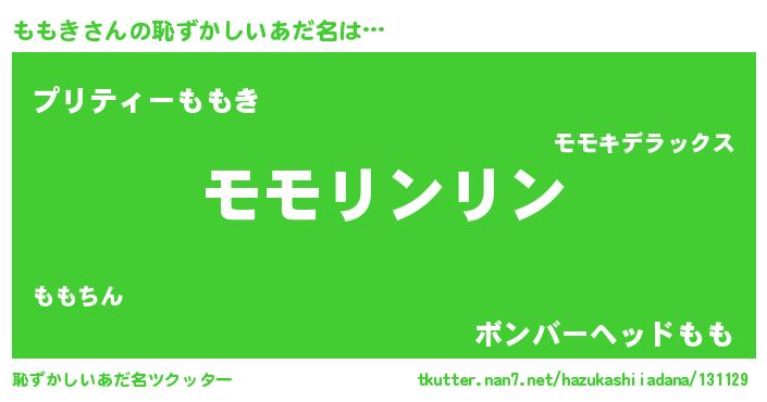 | ヘコむあだ名 | 『ももを』『もももー』『ももき(笑)』 |