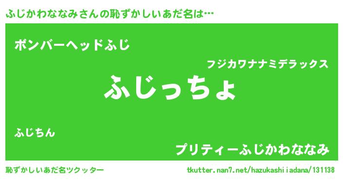 | 男性向けラノベタイトル風あだ名 | 『この素晴らしい世界にふじかわななみを!』 |
