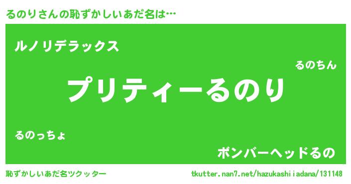 | ヘコむあだ名 | 『るのにゅー』『るのり(笑)』 |