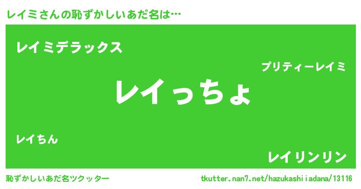 | ヘコむあだ名 | 『豆乳』『レイっぺ』『レイっふぃ~』 |