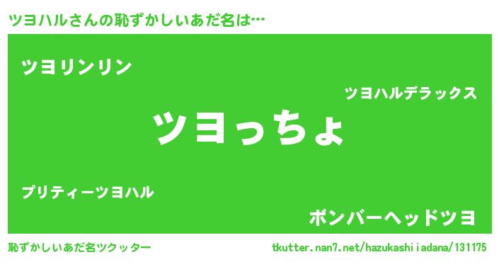 | ポケモン風あだ名 | 『ツヨハダネ』『ヒツヨハル』 |