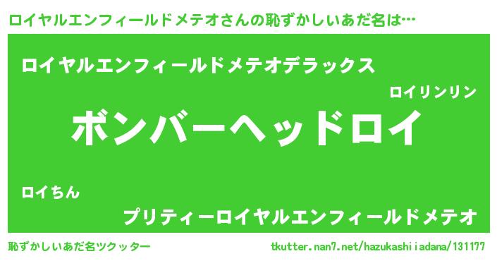 | 意味不明あだ名 | 『眠気覚ましガムロイヤルエンフィールドメテオ味』 |