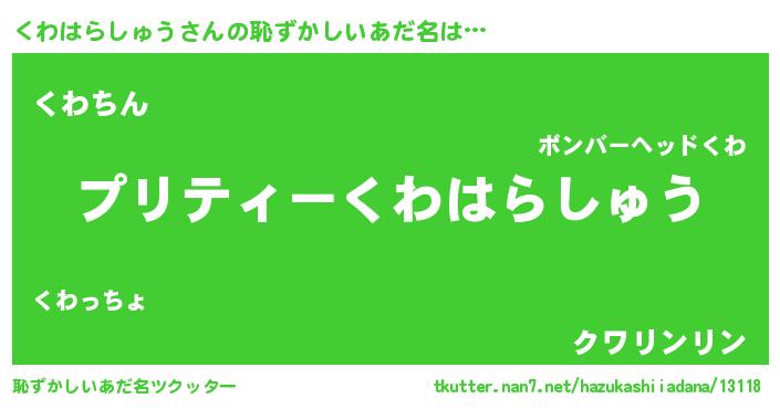 | ヘコむあだ名 | 『くわもー』『くわはらしゅう(爆)』 |