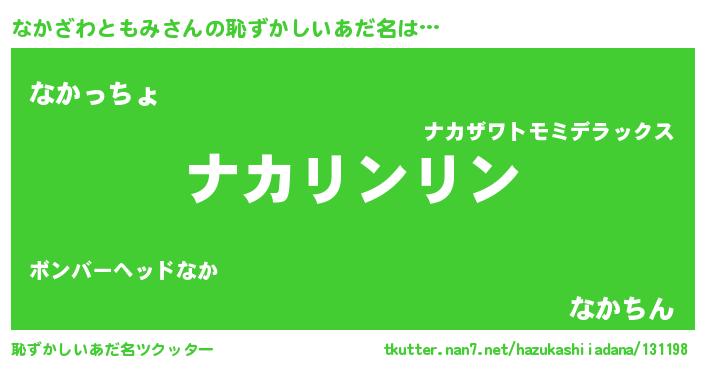 | 男性向けラノベタイトル風あだ名 | 『なかざわともみの嫁は女の子じゃないと思った?』 |