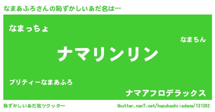 | 意味不明あだ名 | 『とにかく怪しいなまあふろ』 |