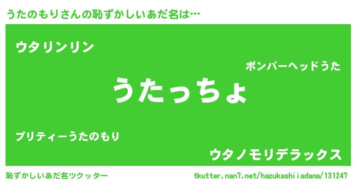 | 意味不明あだ名 | 『住所不定無職うたのもり(41歳)』 |