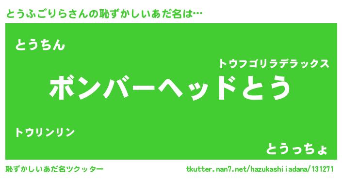 | ヘコむあだ名 | 『とうふごりら(笑)』『つくし』 |