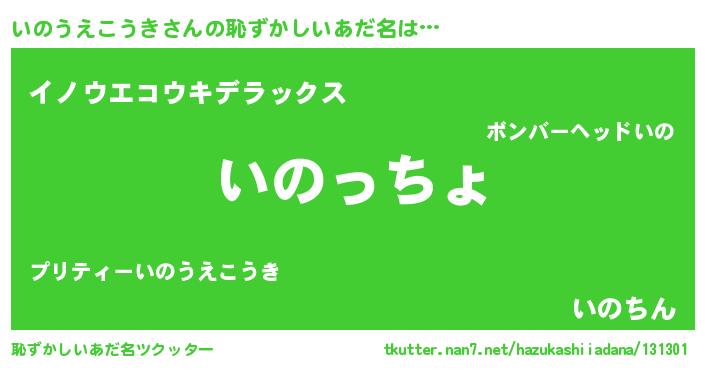 | ヘコむあだ名 | 『なまこ酢』『いのうえこうき(笑)』 |