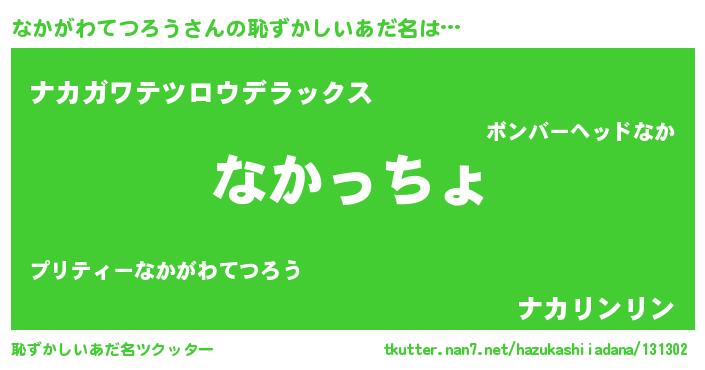| 意味不明あだ名 | 『なかがわてつろうフォーエバー』 |