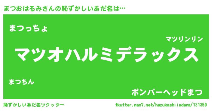| 男性向けラノベタイトル風あだ名 | 『Re:まつおはるみから始める異世界生活』 |