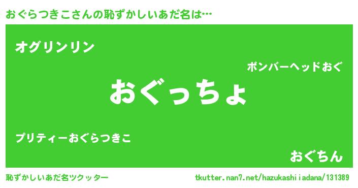| 意味不明あだ名 | 『住所不定無職おぐらつきこ(4歳)』 |