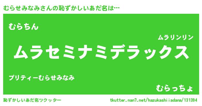 | 意味不明あだ名 | 『自称むらせみなみ』 |