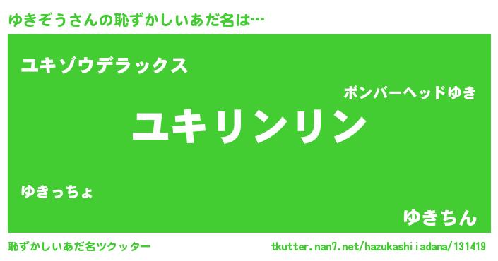 | ヘコむあだ名 | 『ゆきぷりん』『ゆきぞう(笑)』 |