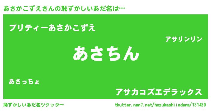 | 意味不明あだ名 | 『永久保存あさかこずえ』 |