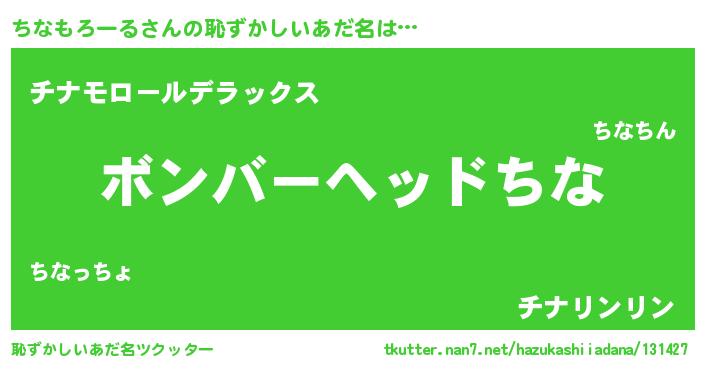 | ヒーロー風カッコイイあだ名 | 『慈愛の使者ちなもろーる』 |