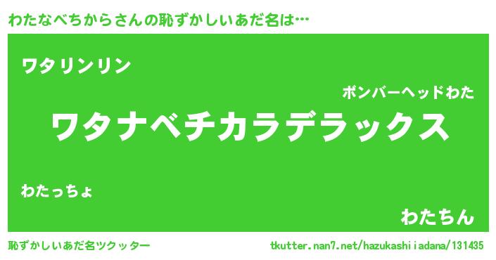 | 女子向けラノベタイトル風あだ名 | 『わたなべちからなんてお断りですっ。』 |