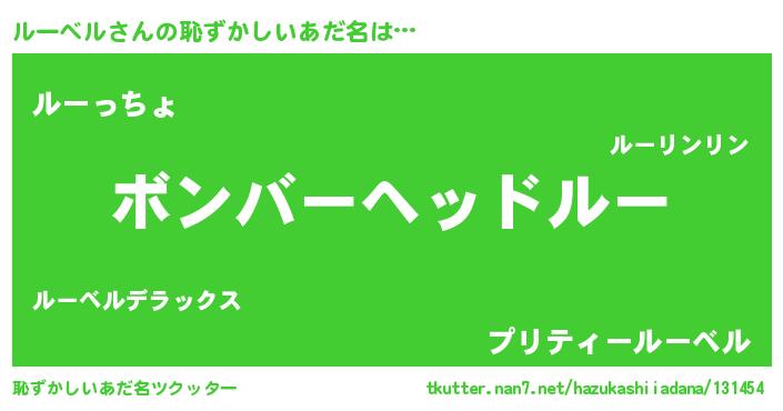 | 男性向けラノベタイトル風あだ名 | 『ルーベルに滅ぼされるだけの簡単なお仕事です』 |