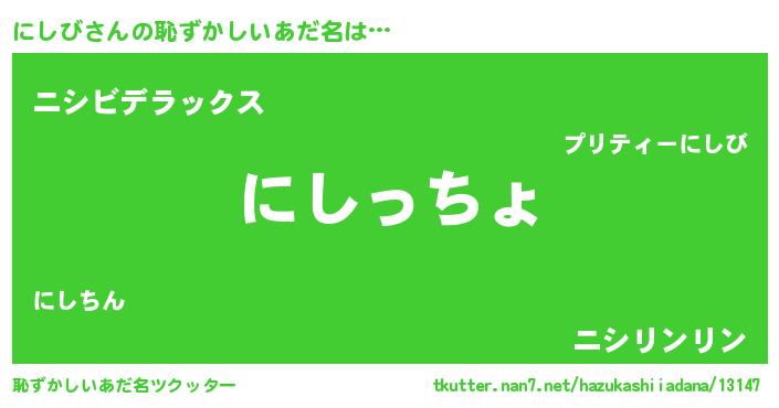 | 意味不明あだ名 | 『にしびフォーエバー』『自称にしび』 |