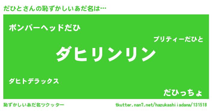 | ヒーロー風カッコイイあだ名 | 『魔戒騎士ダヒ』『愛の使者だひと』 |