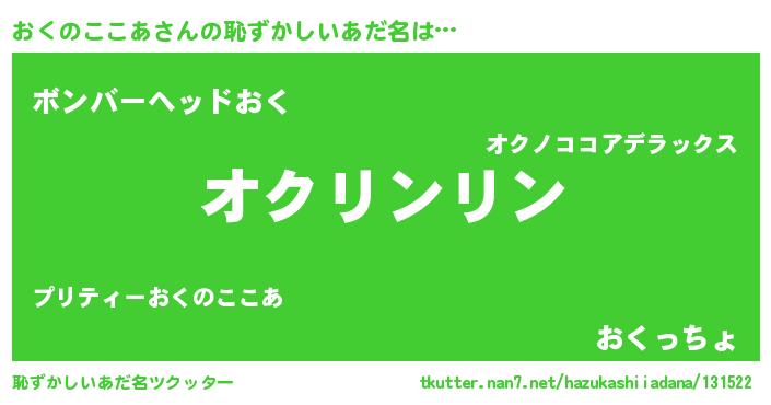 | 意味不明あだ名 | 『とにかく怪しいおくのここあ』 |