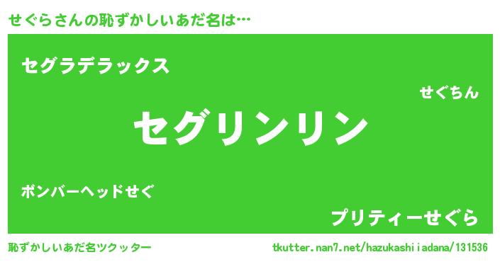 | 意味不明あだ名 | 『とにかく怪しいせぐら』『自称せぐら』 |