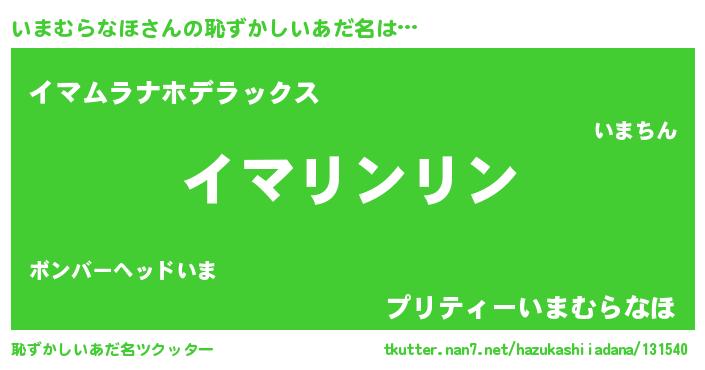 | 意味不明あだ名 | 『とにかく怪しいいまむらなほ』 |