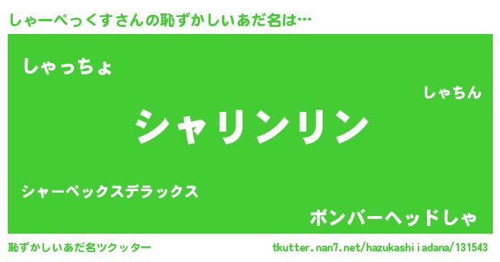| 男性向けラノベタイトル風あだ名 | 『シャーペックススレイヤー』 |