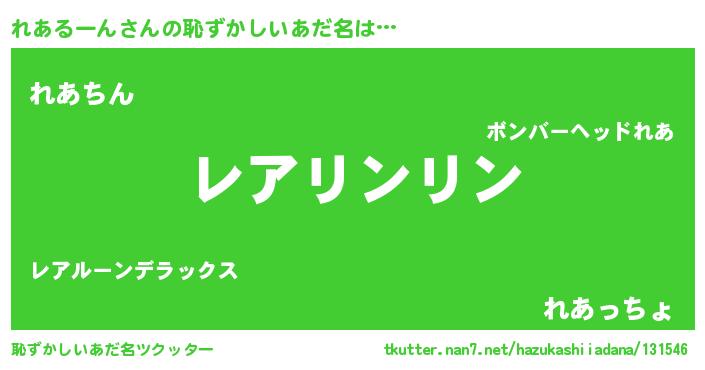 | ヘコむあだ名 | 『れあっ子』『れあるーん(震え声)』 |