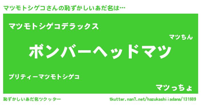 | 男性向けラノベタイトル風あだ名 | 『ノーゲーム・ノーマツモトシゲコ』 |