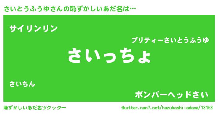 | 意味不明あだ名 | 『さいとうふうゆフォーエバー』 |