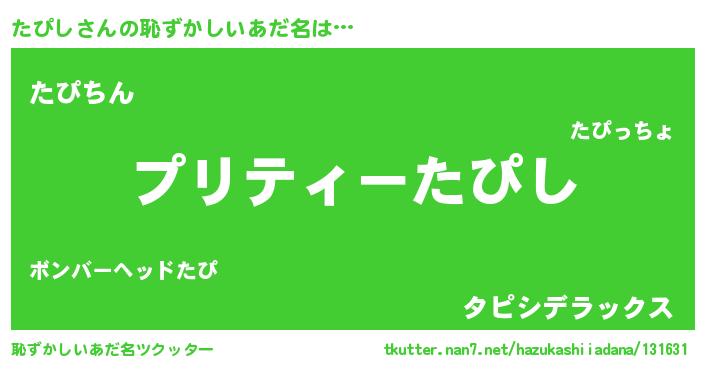 | ファンタジー風あだ名 | 『タピフェル』『タピディッシュ』 |