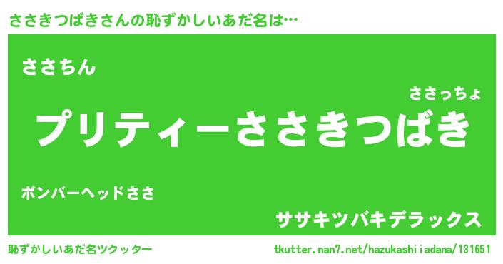 | ヘコむあだ名 | 『ささっふぃ~』『ささきつばき(笑)』 |