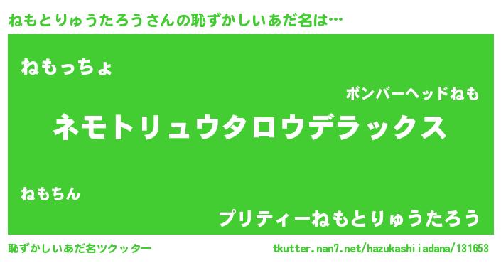 | 意味不明あだ名 | 『住所不定無職ねもとりゅうたろう(65歳)』 |