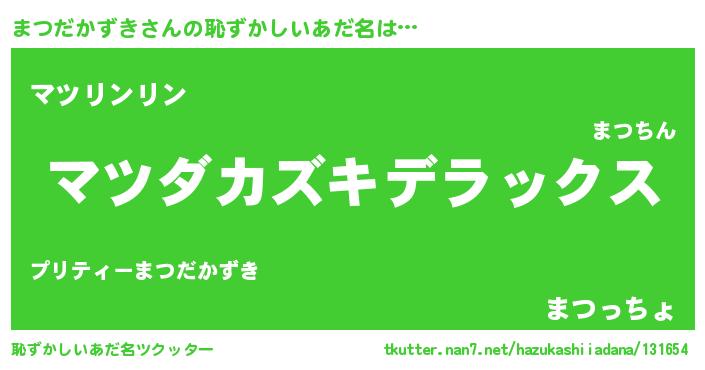 | 意味不明あだ名 | 『住所不定無職まつだかずき(56歳)』 |
