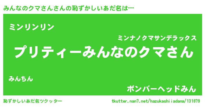 | ヒーロー風カッコイイあだ名 | 『スーパーミンナノクマサン』 |